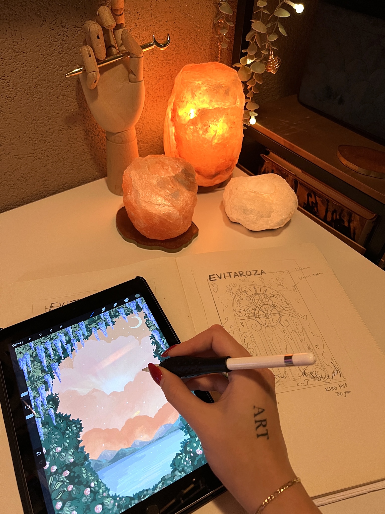 Ik ben nogal een dromer en dat kun je nu wel in mijn kunst terugzien. Een beetje spiritueel, dromerig en magisch, is wat ik mooi vind.”